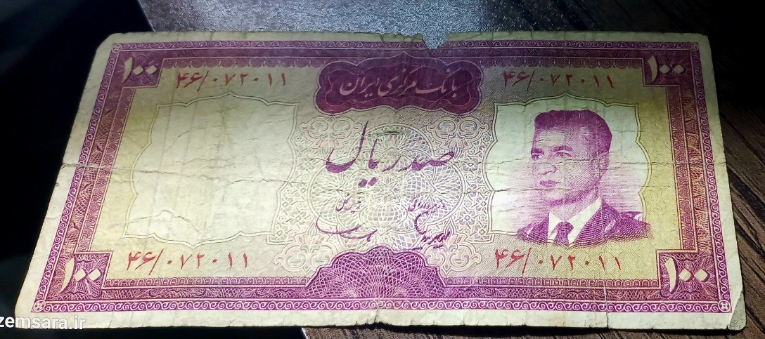 اسکناس صد ریال محمد رضا شاه پهلوی