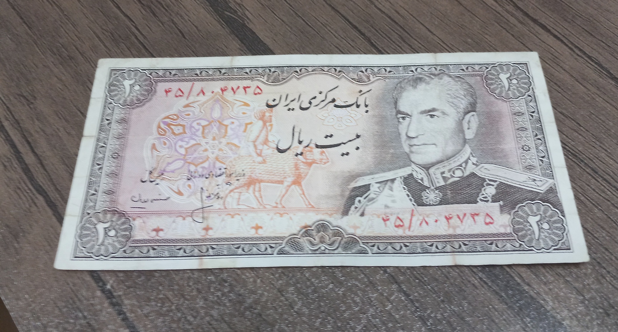 دو عدد اسکناس بیست ریال شانه پهن محمد رضا شاه پهلوی