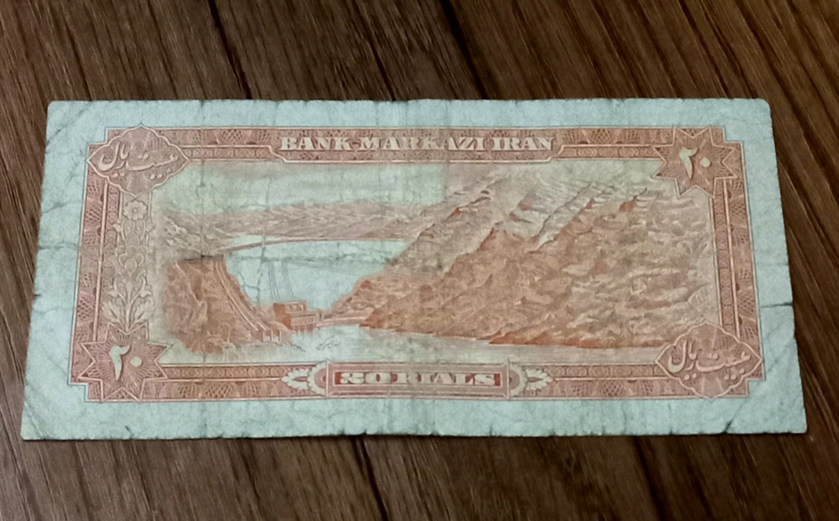اسکناس بیست ریال شانه پهن محمد رضا شاه پهلوی