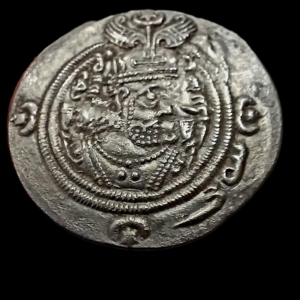 سکه نقره خسرو پرویز ضرب کمیاب بیشابور سال26سلطنت
