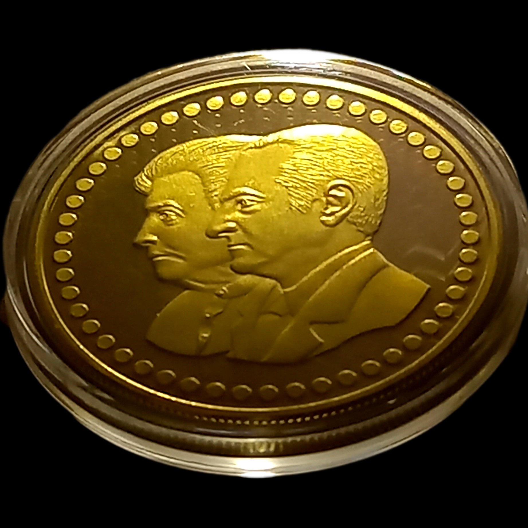 سکه یادبو برنز بی نظیر اب طلای ملکه مادر پهلوی با کپسول مخصوص