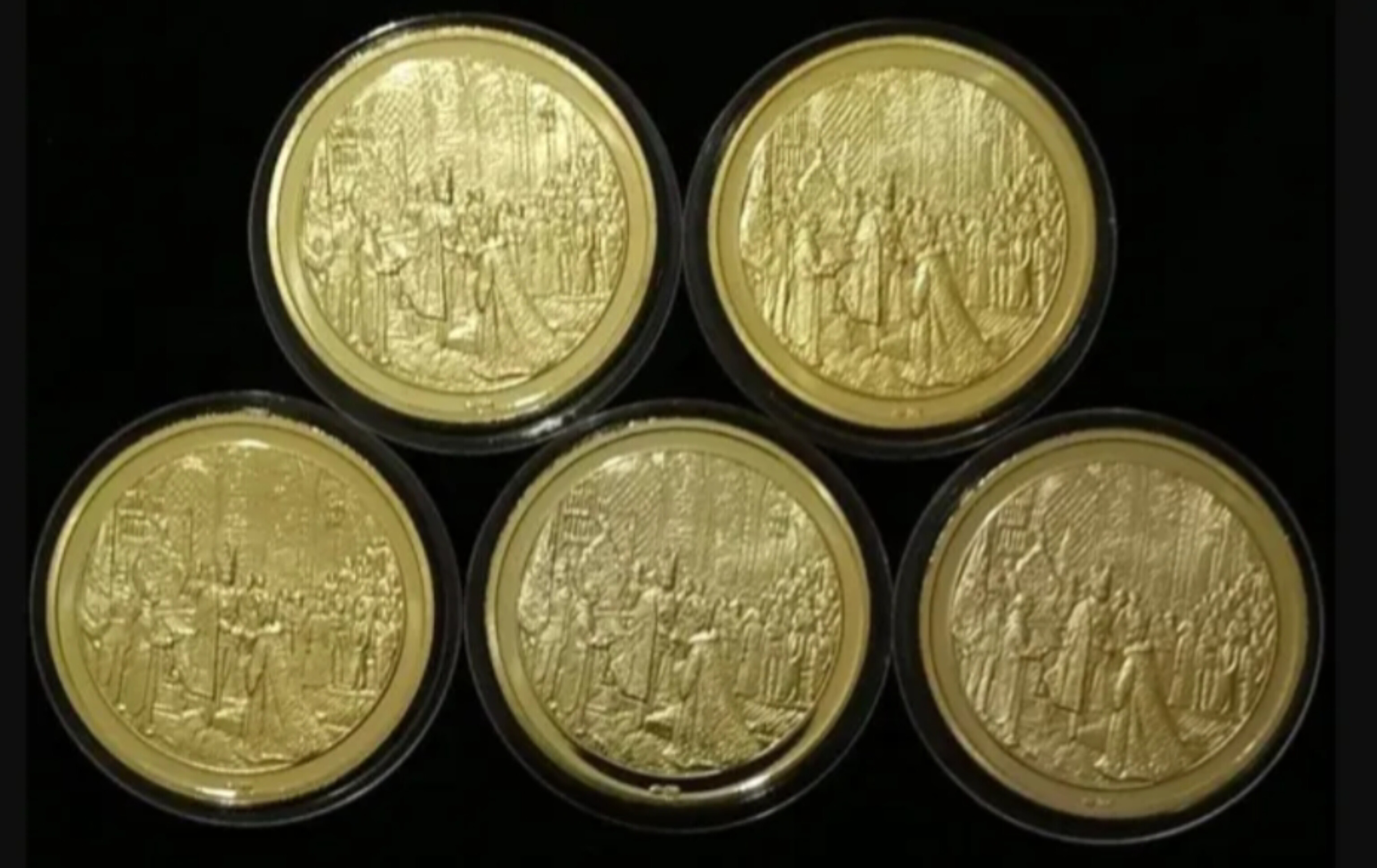پنج عدد مدال تاجگذاری با کپسول مخصوص