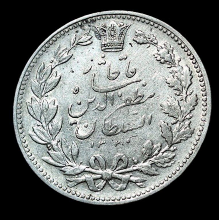 پنج هزار دینار نقره خطی سال1320 ه. ق مظفرالدین شاه قاجار