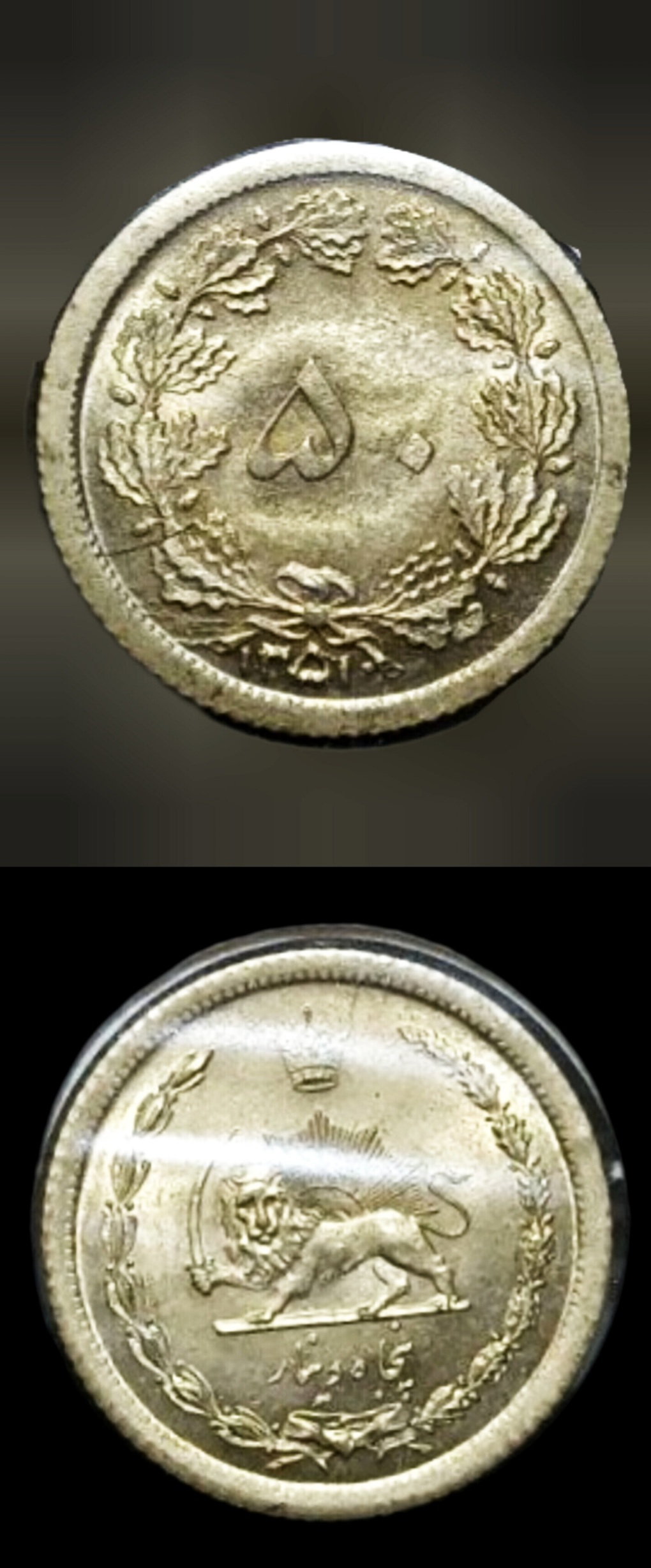 پنجاه دینار برنزی بسیار کمیاب سال 1351