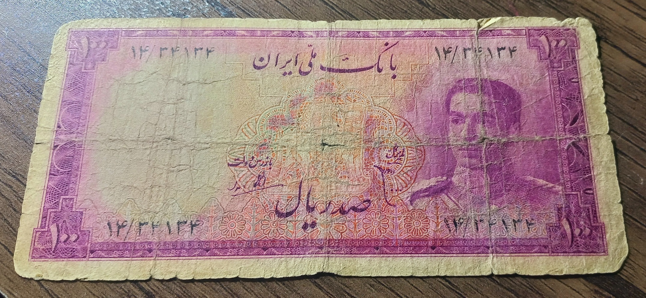 اسکناس صد ریال بانک ملی دوران محمد رضا شاه پهلوی