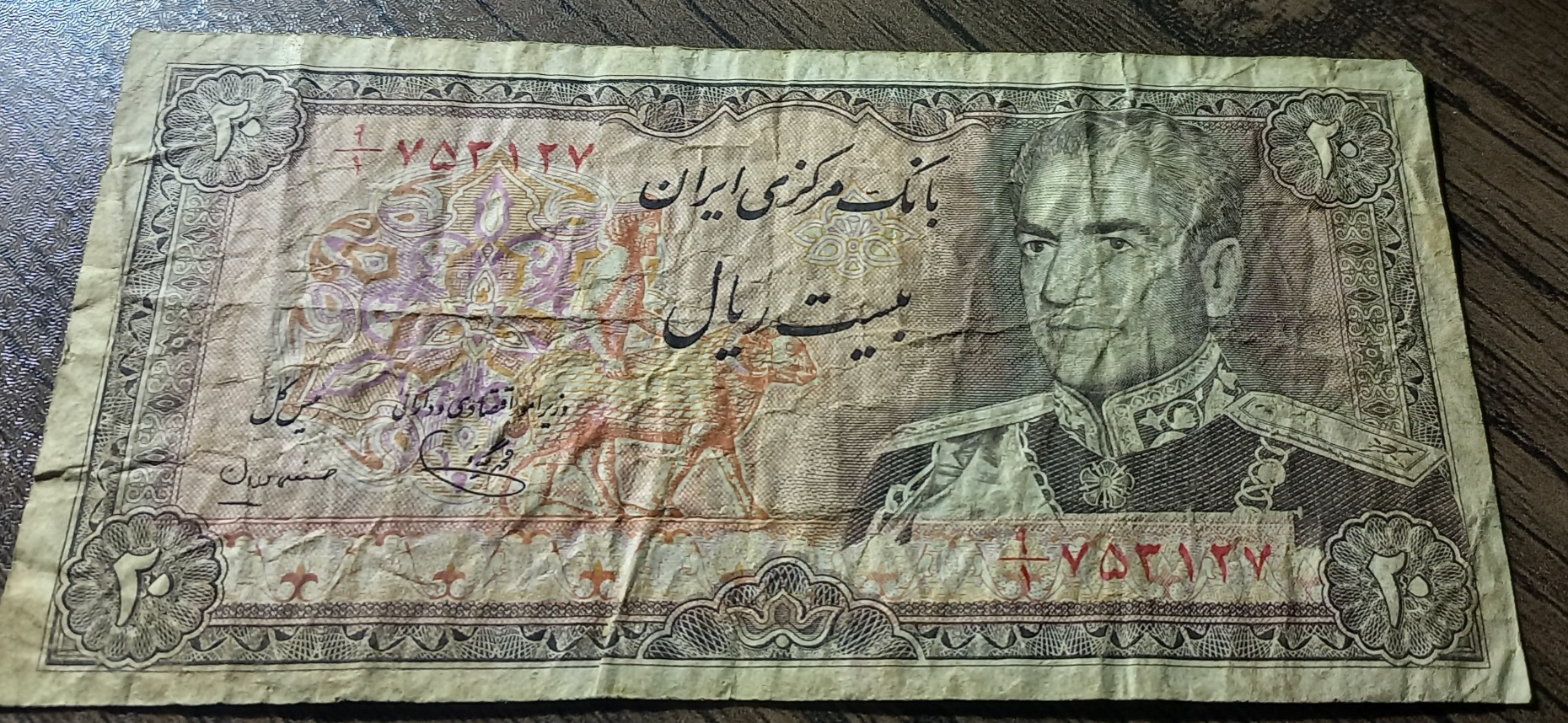 اسکناس بیست ریال شانه پهن محمدرضاشاه پهلوی
