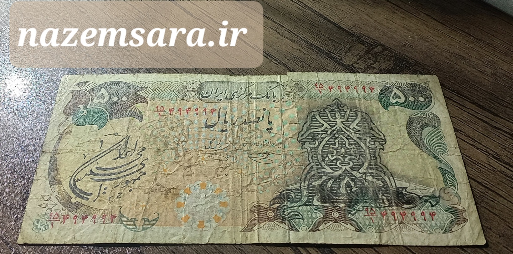 اسکناس پانصد ریال با سورشارژ تصویر محمدرضاشاه پهلوی