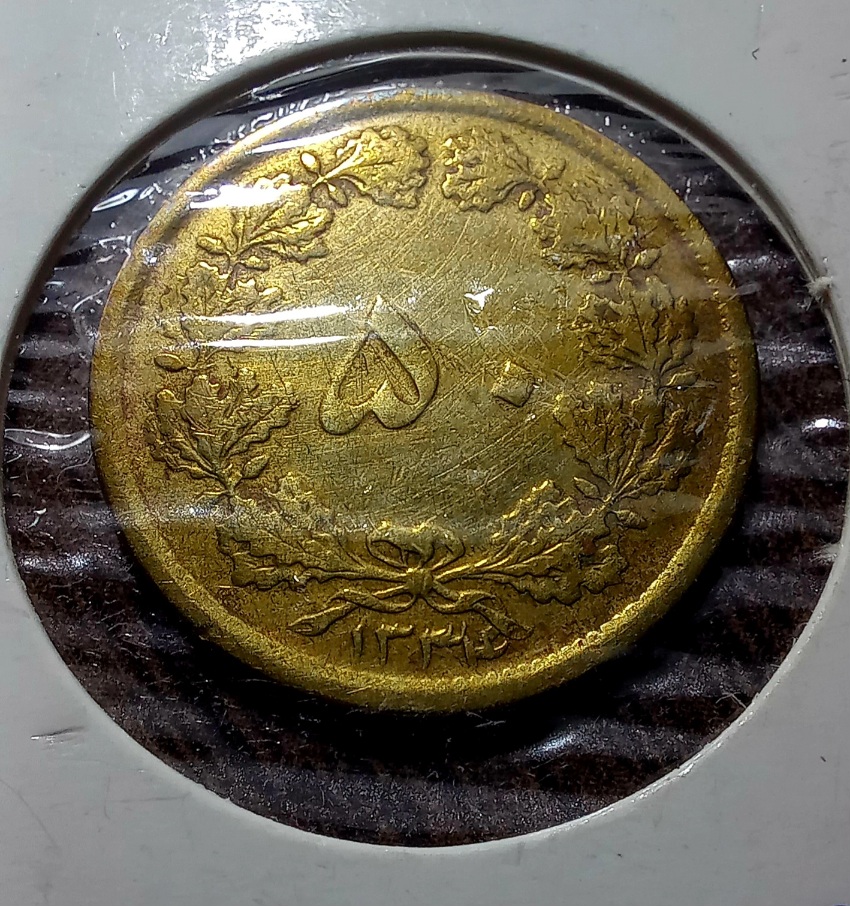 پنجاه دینار برنزی کمیاب سال1334محمدرضاشاه پهلوی