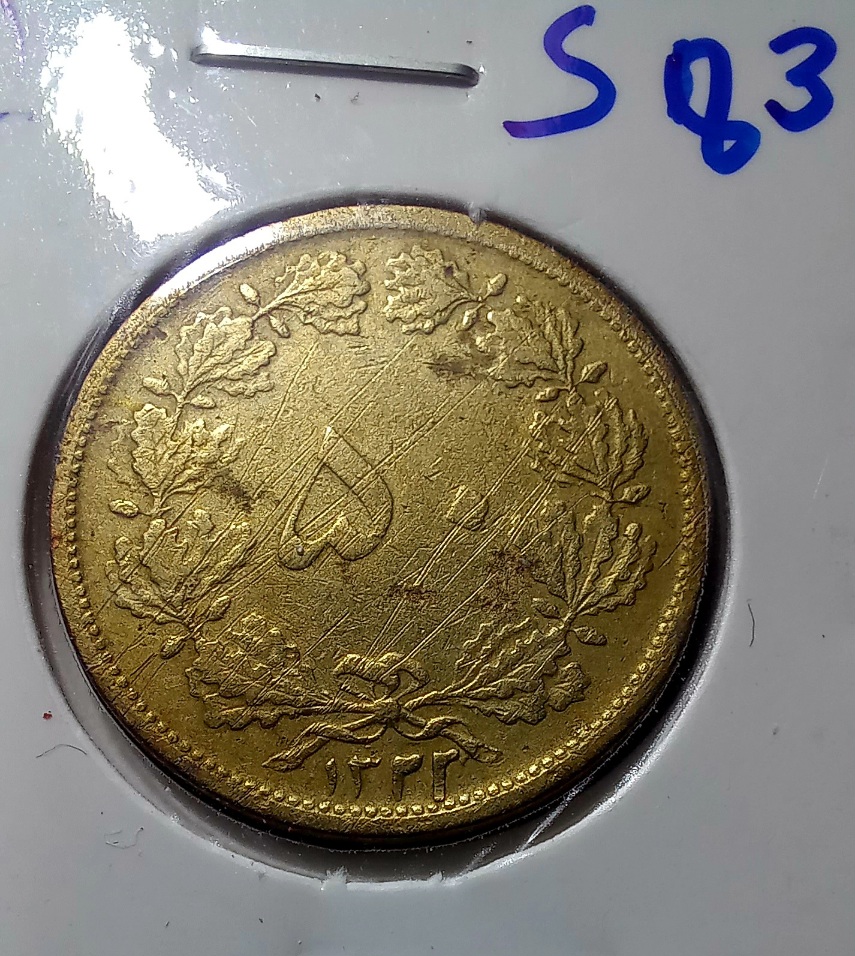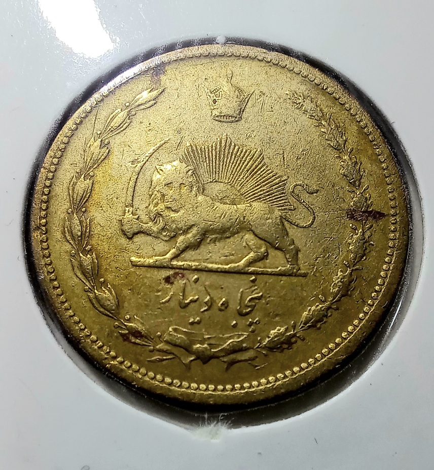 سکه بسیار نایاب 50دینار برنزی1322سورشارژ روی1321
