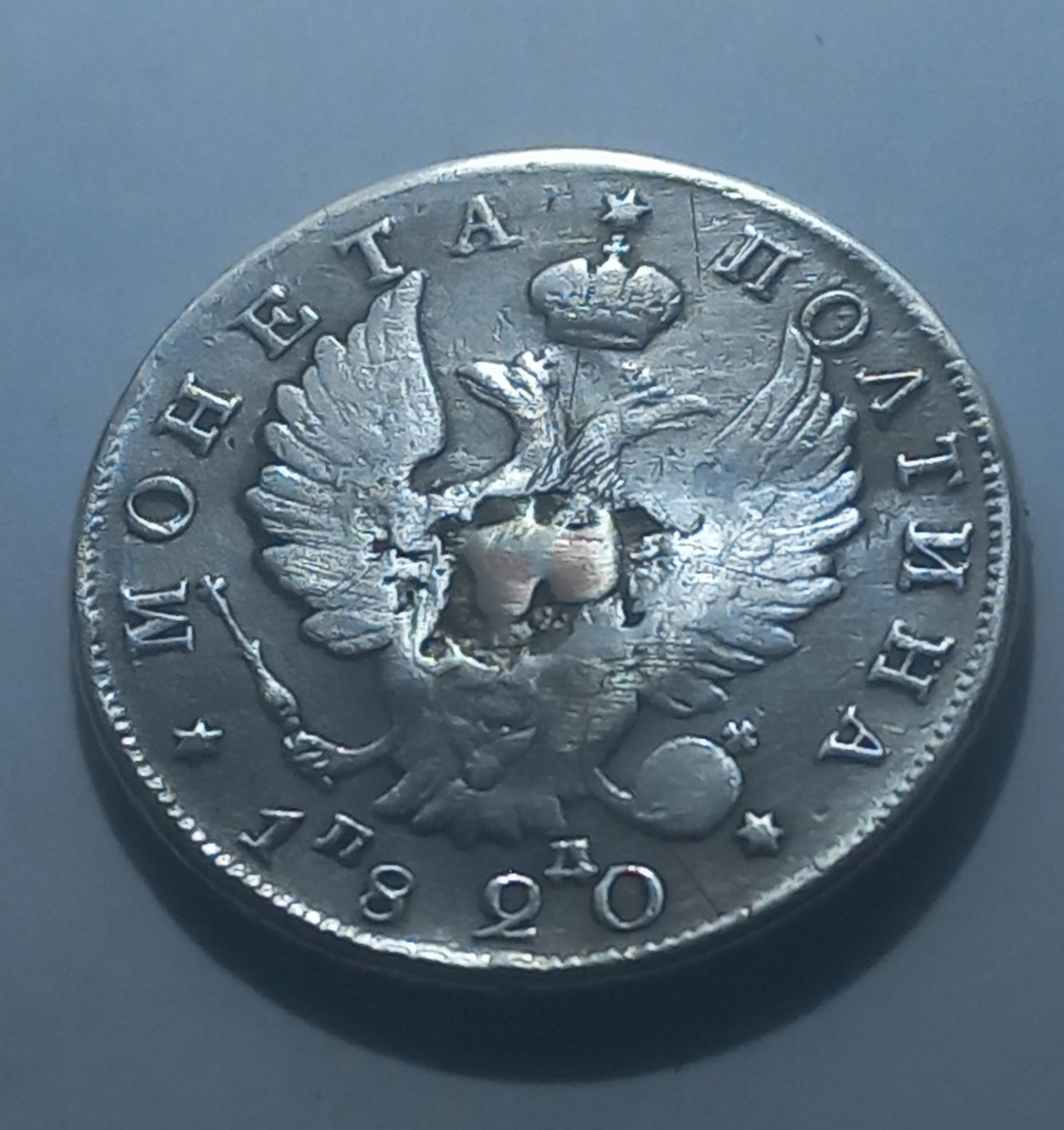 یک پولتینانقره وزن ده گرم. ضرب 1820میلادی